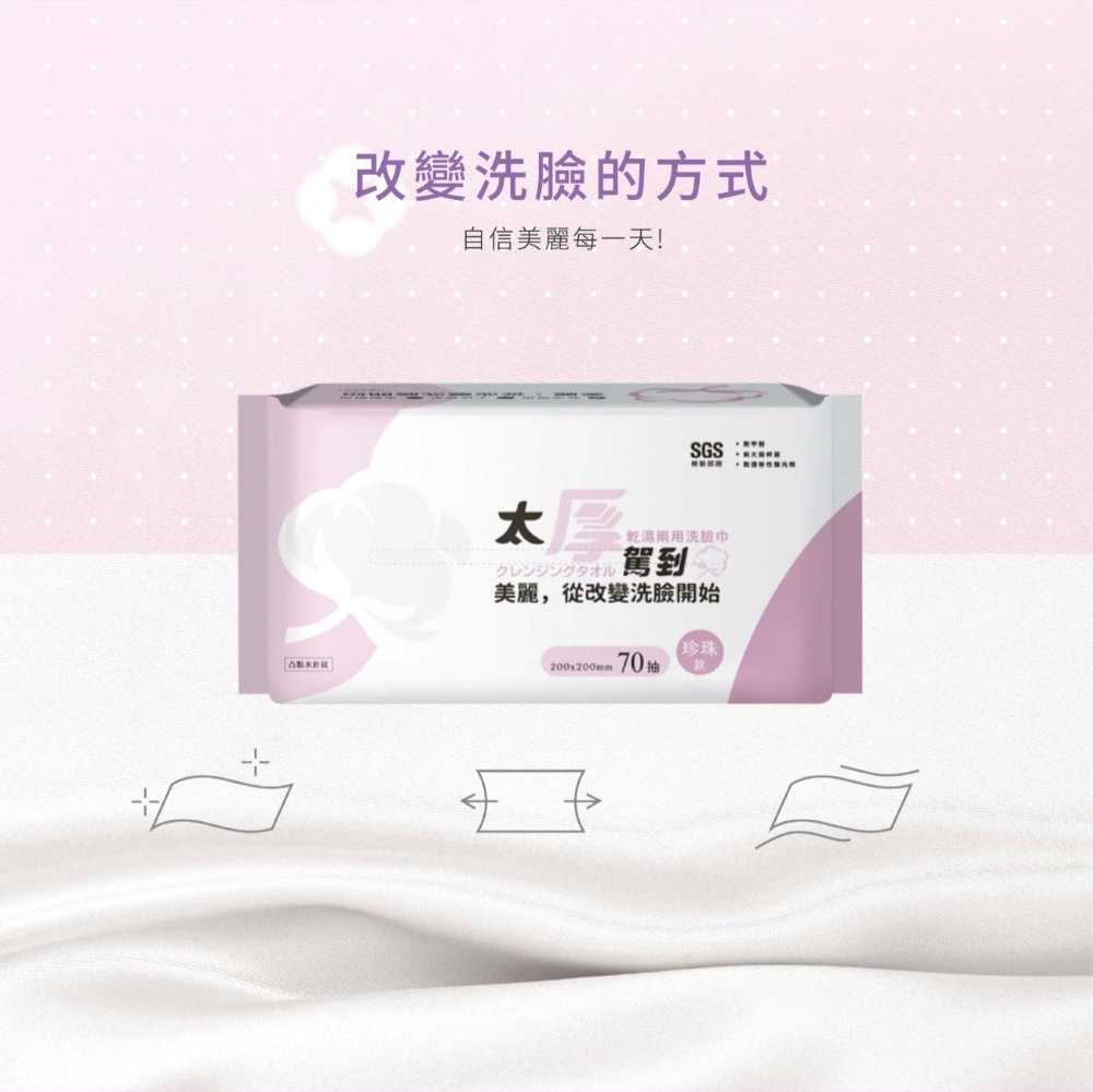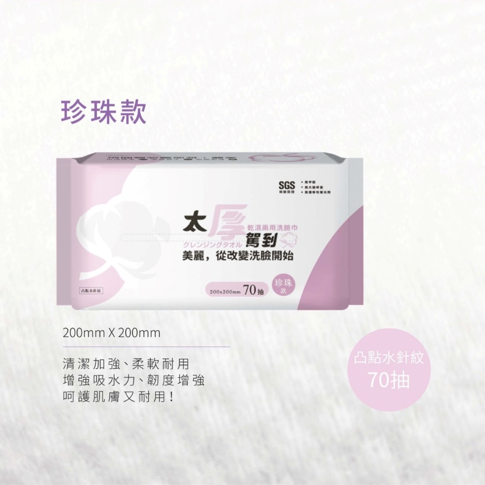品 名:【宏瑋】太厚乾濕兩用洗臉巾70抽 - 珍珠款材 質:不織布產 品 尺 寸:約200 x 200mm ±5%產 品 內 容:70抽(±5抽)/包 產 地:台灣保 存 期 限:3年