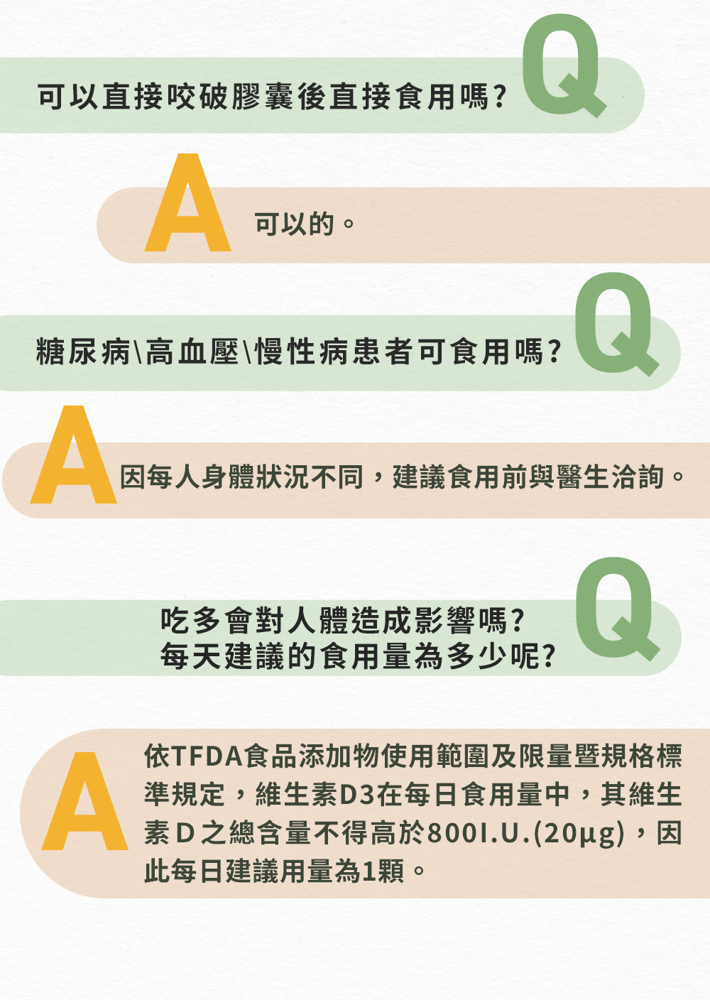內容物名稱(成分):橄欖油、明膠、甘油、果膠、維生素D3(玉米油、膽鈣化醇)