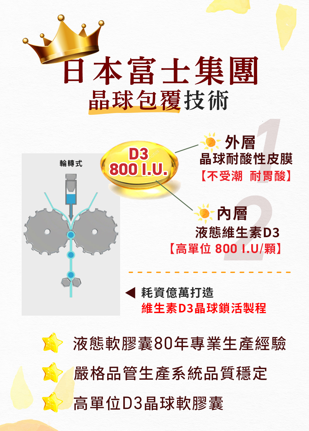 規格:富士集團維他命D3晶球x6瓶、高吸收長效抗氧化維他命Cx2盒