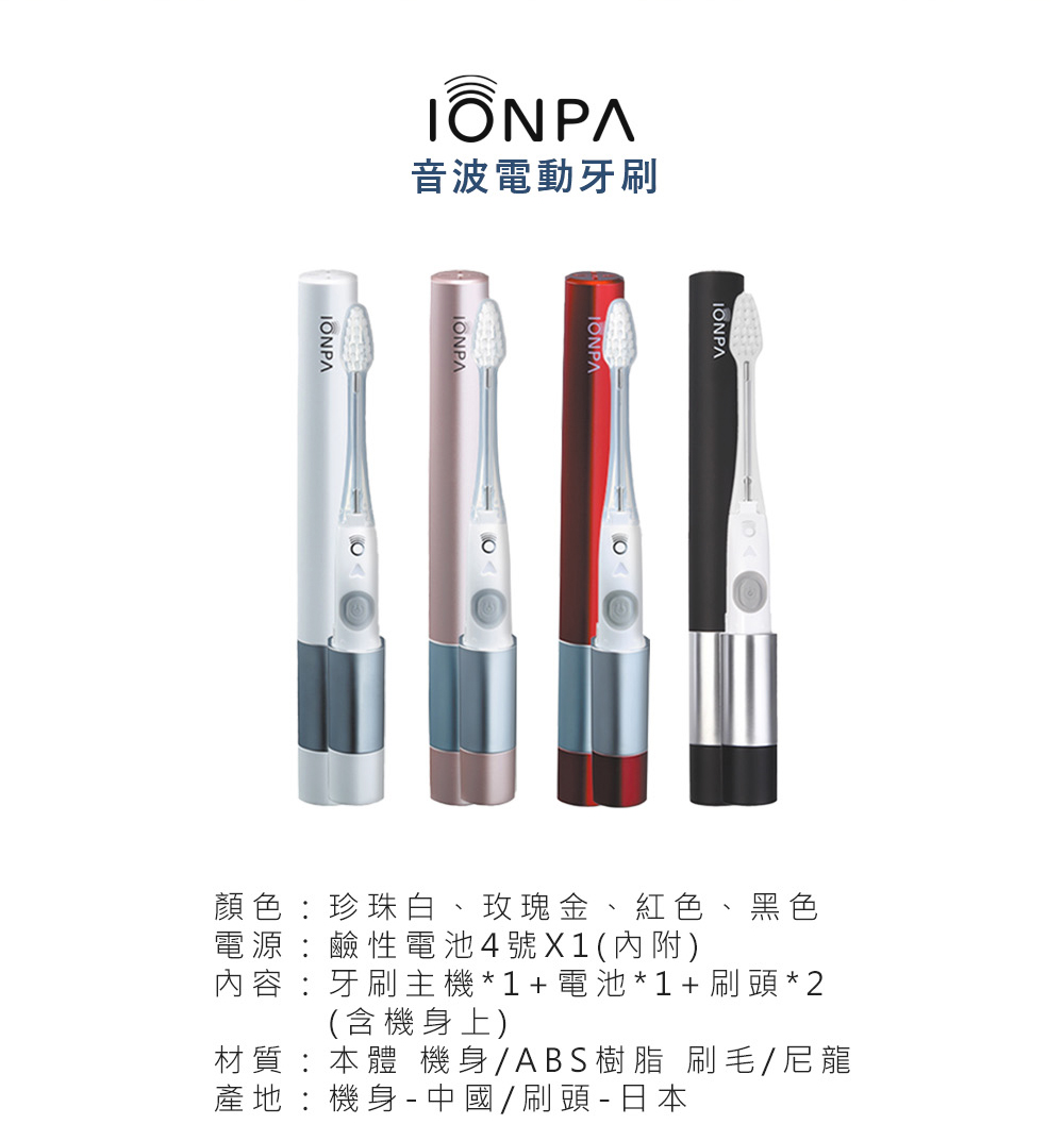 品名:【IONPA】攜帶式音波電動牙刷含電池DM-021