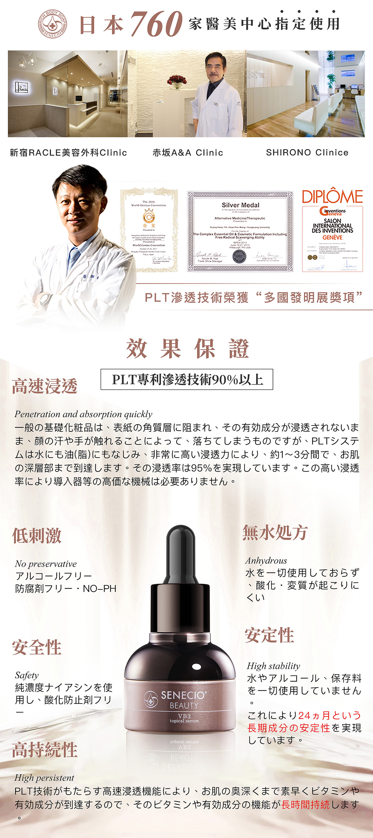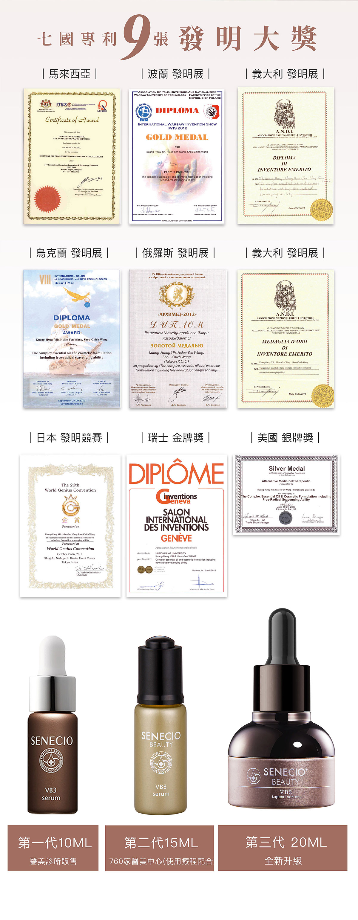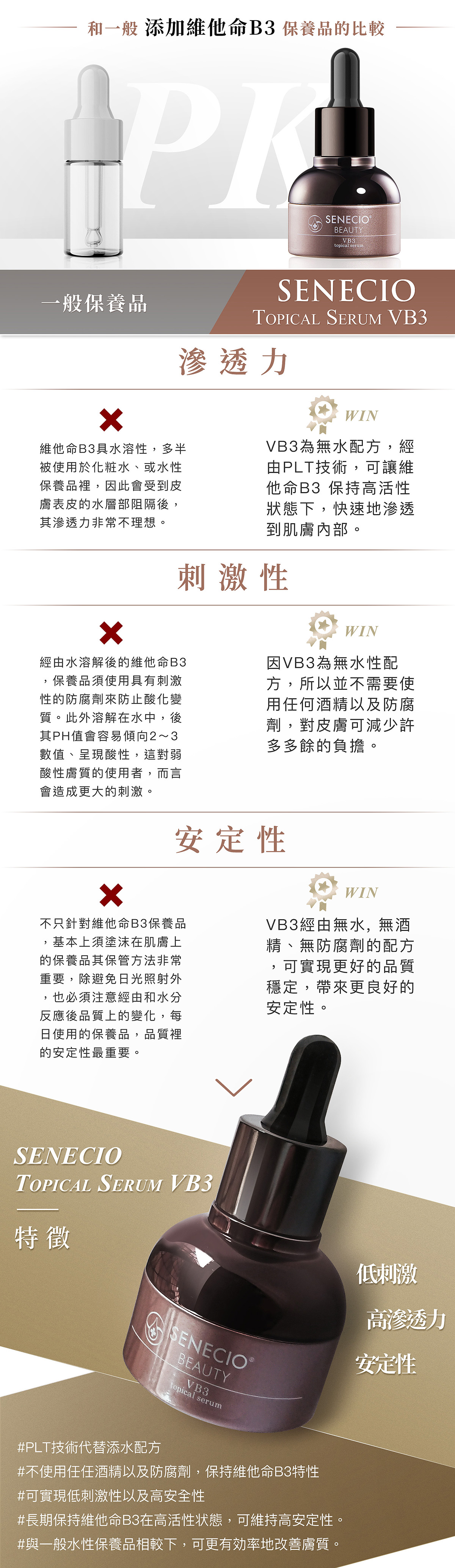 品名:【SENECIO】5D拉提VB3專利抗老導入液3瓶組(日本淨膚加強)規格:20ml/瓶,共3瓶使用方法:請依照規定的使用量取出於手掌後,輕輕的塗抹在整體臉部後,請等待3~5分鐘讓導入液完全滲透。注意:為了提升導入液的滲透效果,請先清洗臉部。清洗完臉部後,請使用毛巾擦乾臉部,不要讓任何水分殘留在臉部上。一天使用量請以4滴為上限。