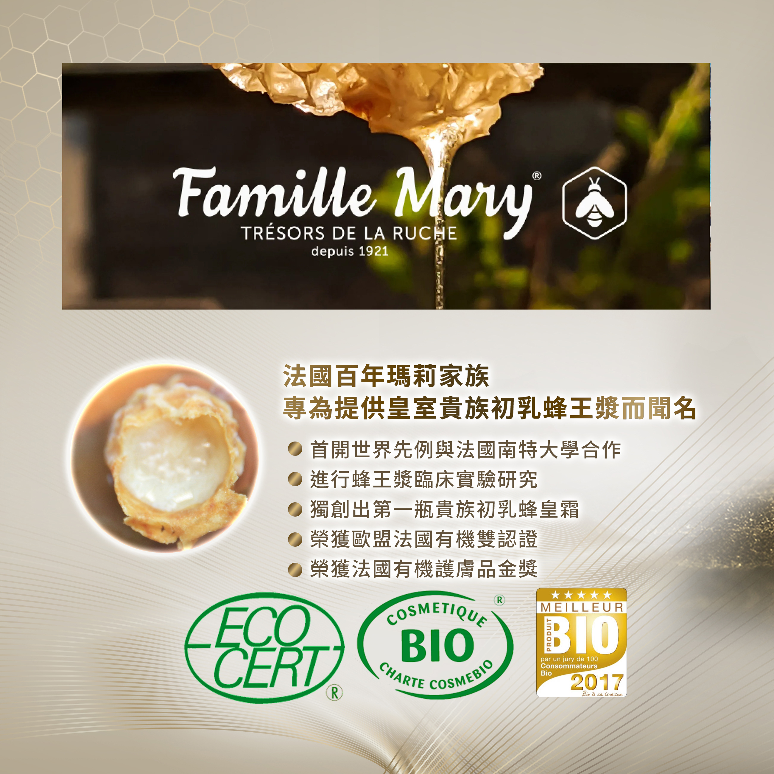 品名:【Famille Mary 瑪莉家族】頂級高濃度蜂王漿乳霜2入禮盒組規格:50ml用法:適合於早晚,取適量在臉部和頸部,輕輕按摩肌膚直到吸收保存期限:3年產地:法國保存方式:放置陰涼乾燥處,避免陽光直射注意事項:使用前請先小範圍於肌膚測試若有感覺不適,則不適合此商品,立即停用並諮詢醫師