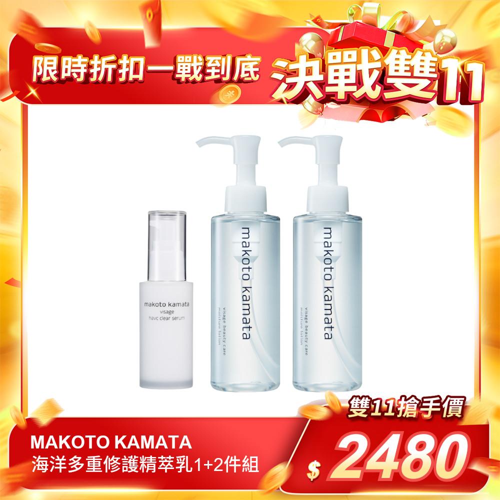 .商品:【MAKOTO KAMATA】海洋多重修護精萃乳1+2件組.規格:海洋多重修護精萃乳30mlx1、海洋水面膜修護精華150mlx2.用途:提升肌膚保水度,增強代謝延緩老化,並改善荳肌。.使用方式:建議按壓1~2下,以雙手手掌包覆臉部,輕輕按摩肌膚直到完全吸收。