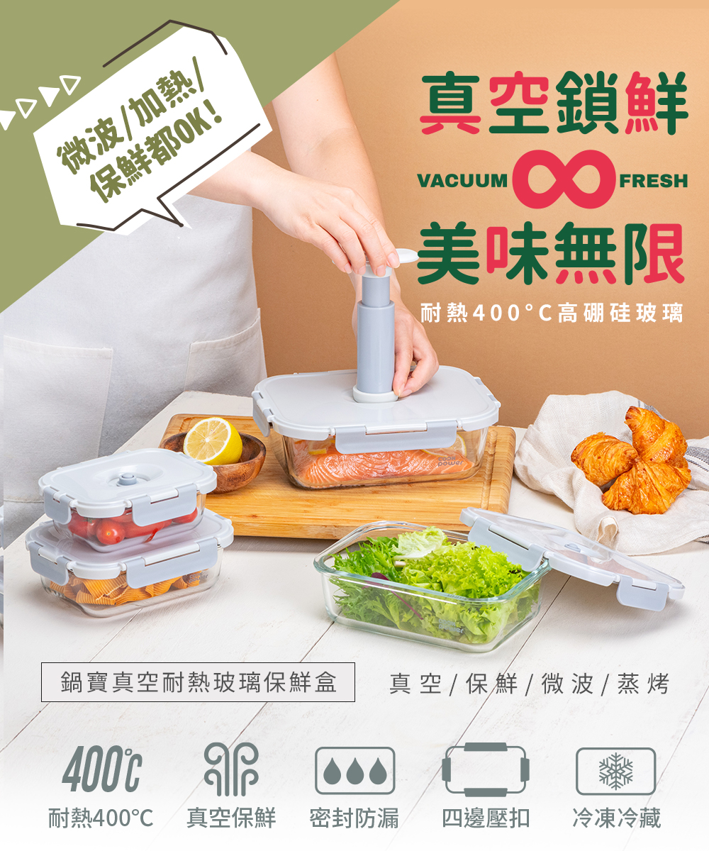 品名:【鍋寶】真空耐熱玻璃保鮮盒980ml