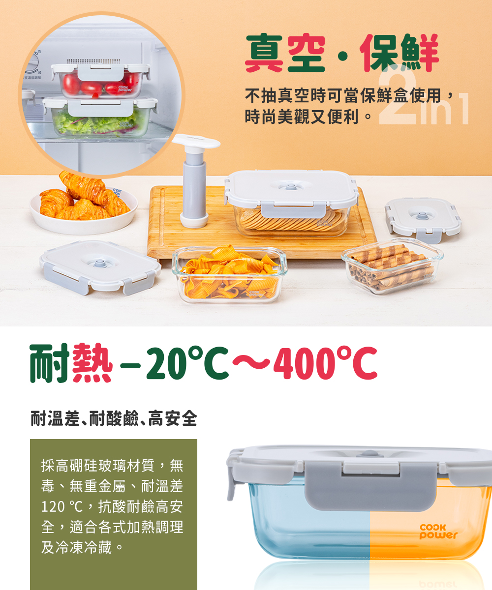 品名:【鍋寶】真空耐熱玻璃保鮮盒1450ml