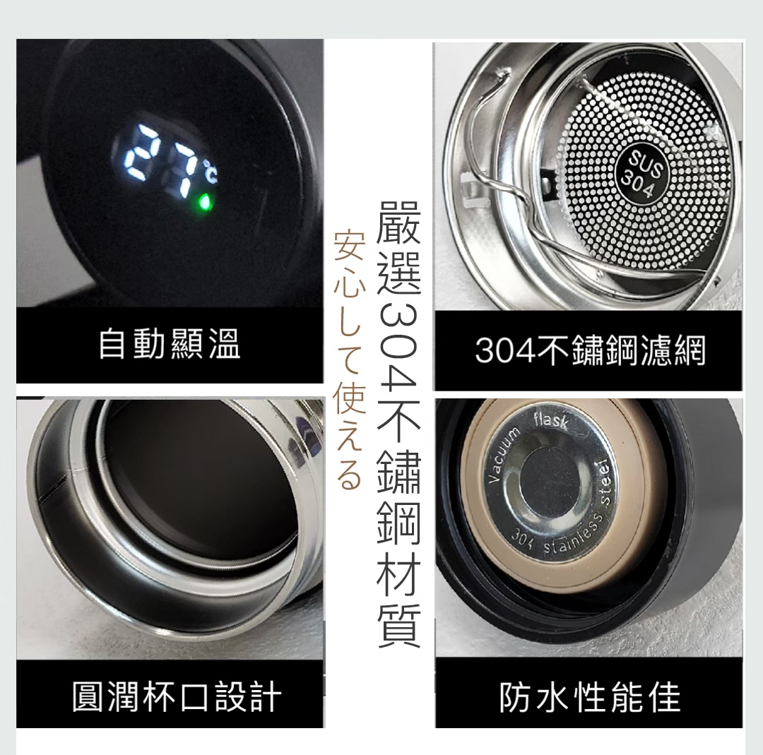 贈品:【日本Hirone】304不鏽鋼顯溫保溫杯500mlx1