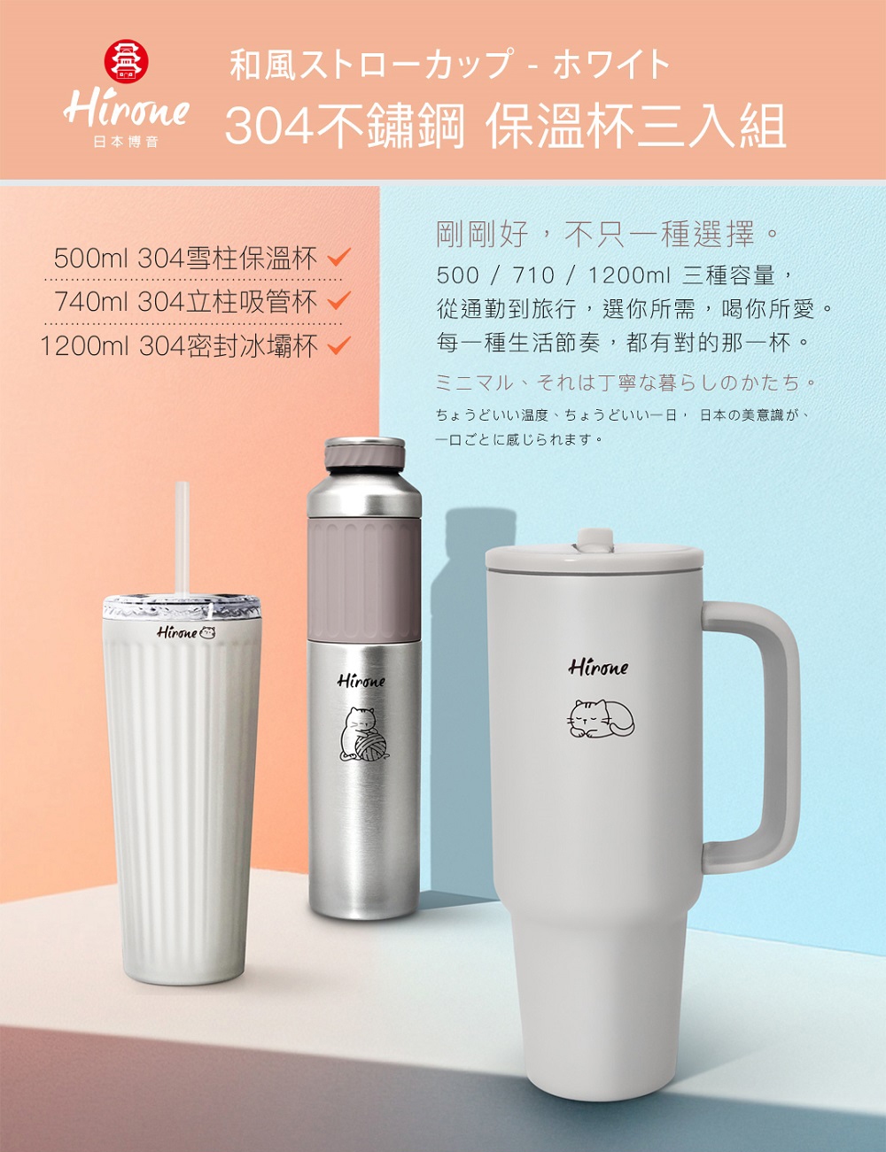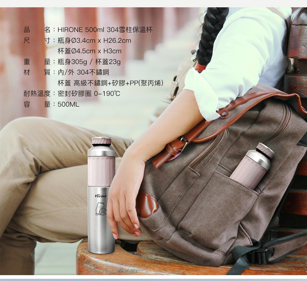 品名:HIRONE 500ml 304雪柱保溫杯