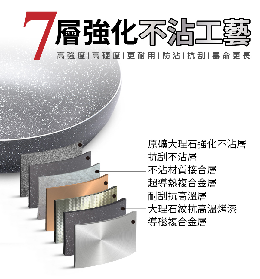 材質:鍋身∕高級合金+不沾材質(耐熱260℃)