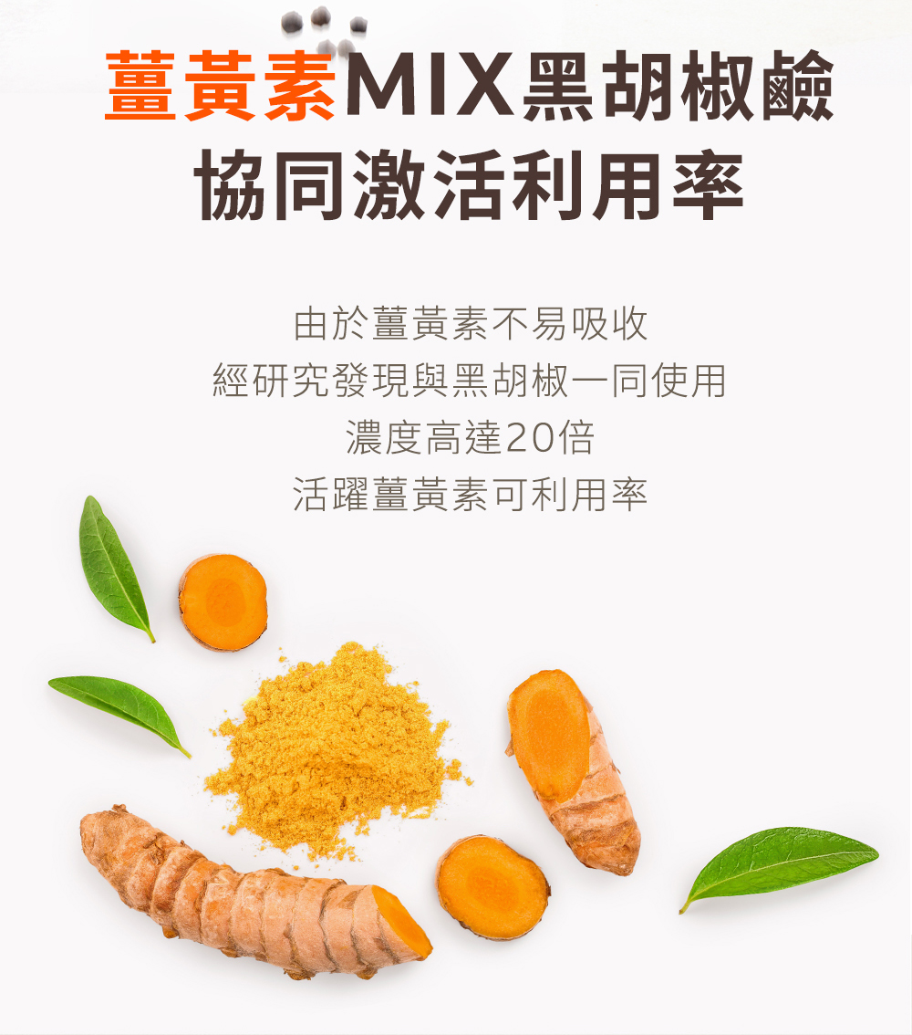 *本產品含薑黃、胡椒鹼,正在服藥的病人、特殊與過敏體質或疾病者,請先洽詢醫師意見。薑黃性燥熱,易口乾舌燥、身體發熱和便祕者、尿黃的人,請避免過量食用。幼兒、孕婦、手術後、出血性疾病患者、胃部疾病、生理期及膽管阻塞的人不適合食用薑黃