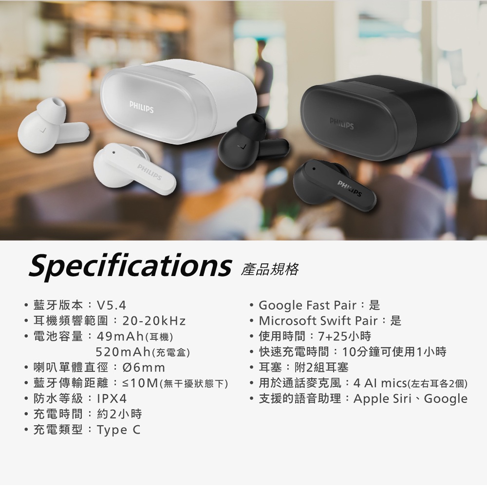 品名:【Philips】入耳式真無線藍牙耳機 TAT2000