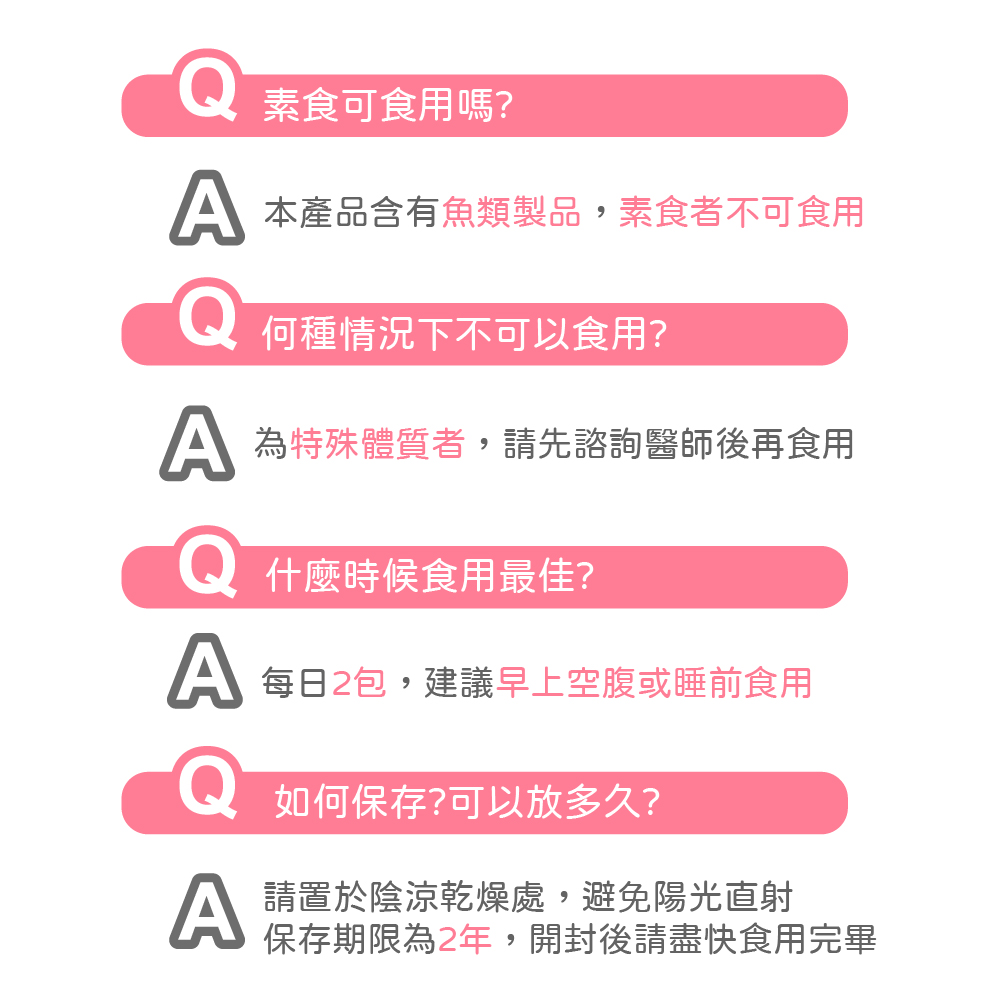 食用方式:每日2包,建議餐前空腹食用,多食無益。